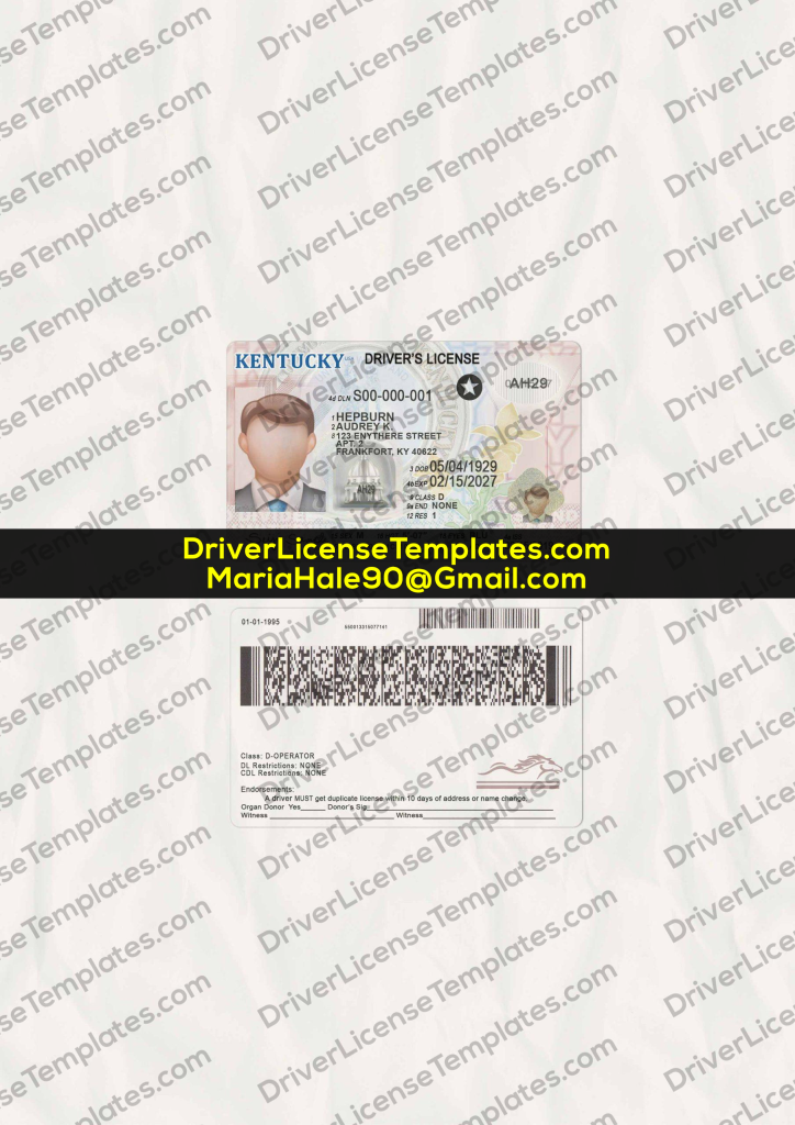 Introducing the Kentucky Drivers License Template PSD – a fully editable Photoshop template. This high-quality template is designed for easy customization, with organized layers and included fonts. Modify the template effortlessly by adding your desired name, address, license number, ID number, birth date, height, weight, expire date, and even change the photos. This layer-based PSD PDF file makes editing a breeze. Explore a huge collection of editable templates at Drivers License Template.